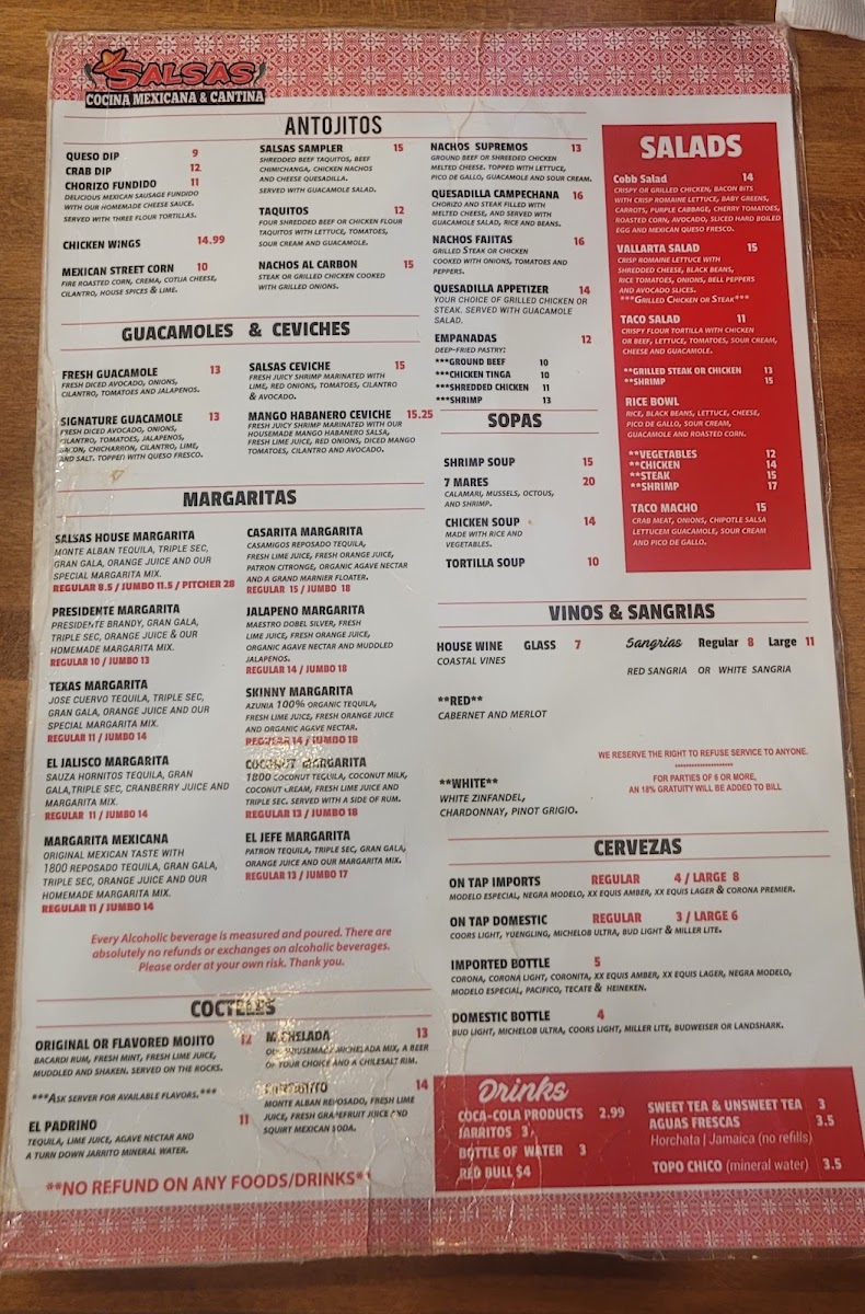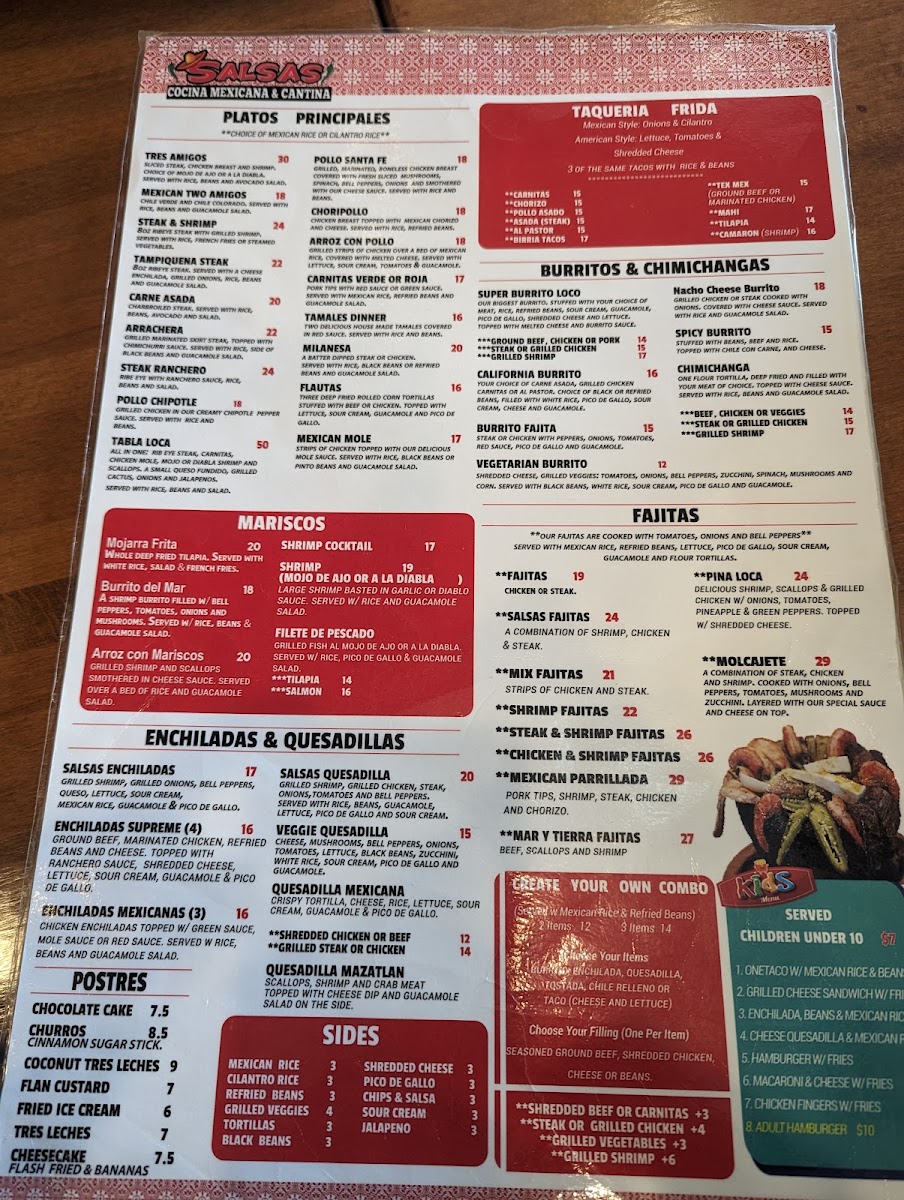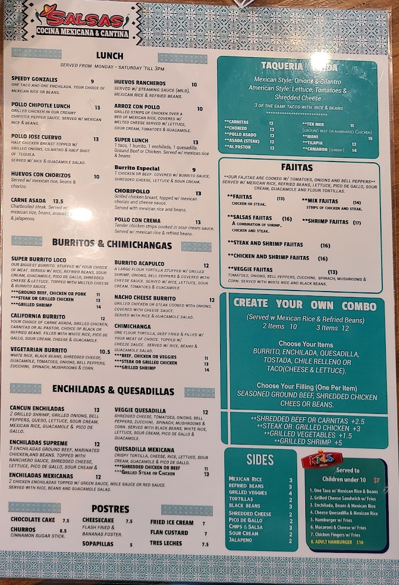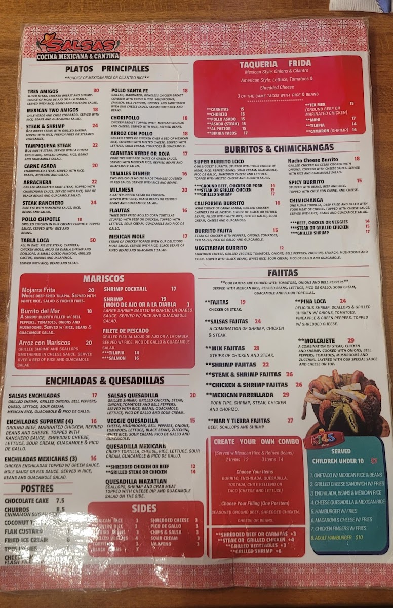 Welcome to Salsas Cocina Daytona Beach, a culinary gem located at 1115 Cornerstone Blvd. This vibrant eatery specializes in authentic Mexican cuisine, where each dish bursts with flavor and authenticity. The menu's highlights include the Super Burrito Loco, a hearty delight stuffed with your choice of savory meats, beans, and toppings, all enveloped in a warm tortilla and drizzled with a rich burrito sauce. For an appetizer, don't miss the Queso Dip—a creamy blend of melted cheese perfect for dipping.